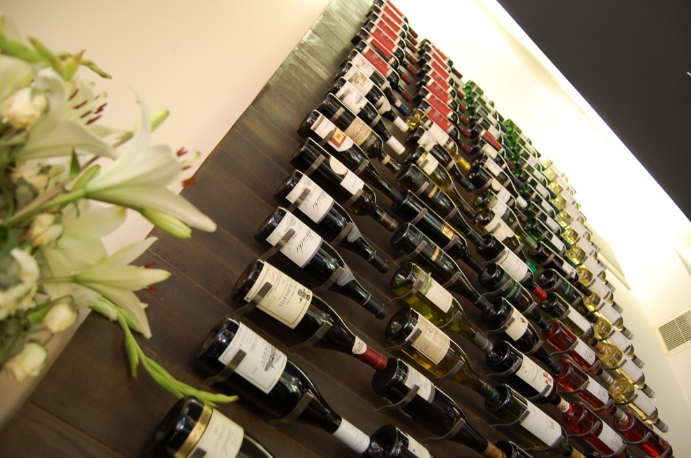 Installed in the far corner, providing a unique element of embossed tactility stood a distinctly 4M, ceiling-to-floor length wine rack. Designed and built specifically for Cafe Phillies, it was created with reclaimed wood and recycled metal - the perfect eye pleasing compliment, to its neighbouring bar countertop – a daily showcase of fresh breads, and appetizers to choose from.