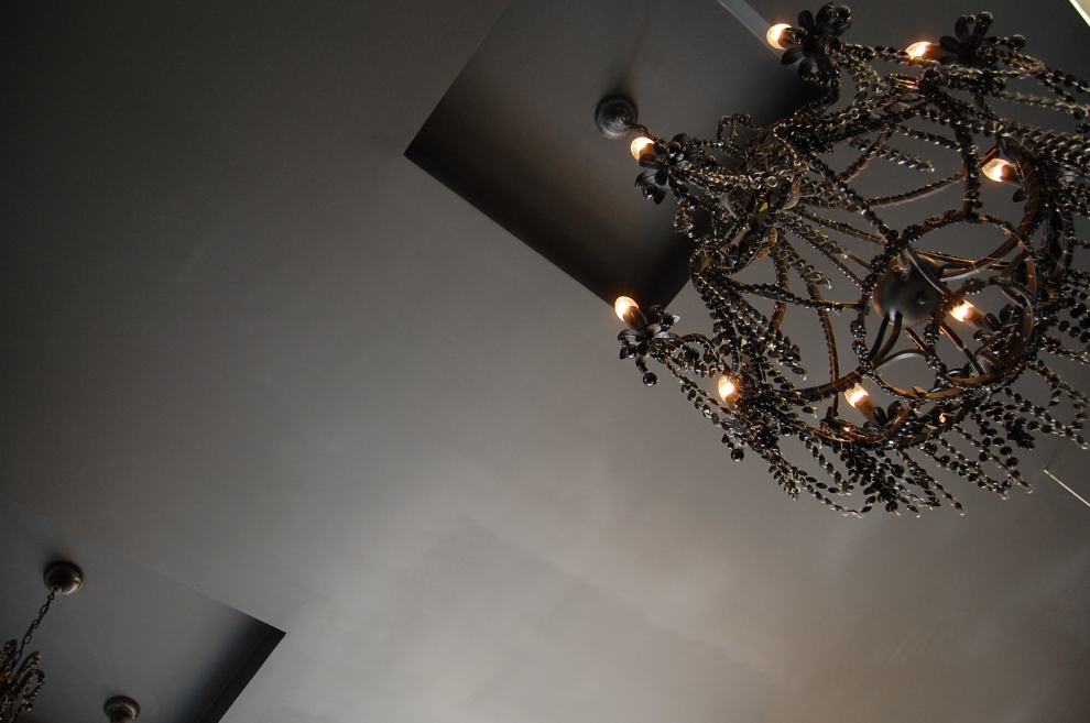To cast an atmosphere of intimacy, 4M matched elegant period feature chandeliers to suspend like grapes on a vine from the ceiling, and fastened a lavish, gold encased mirror by the front entrance, expanding the horizon of the room, enabling guest to glance at one another in circularity.