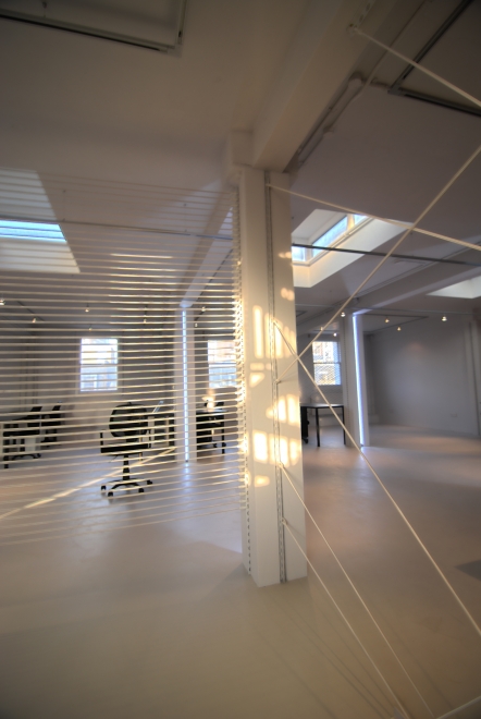 At the heart of the design, and interlocking mesh of bungee cords were clasped and suspended between its walls, to act as the axis to perpendicular partitions, morphing the old into the new.
