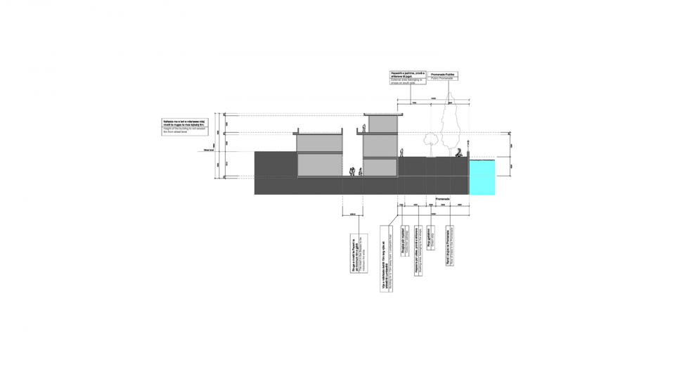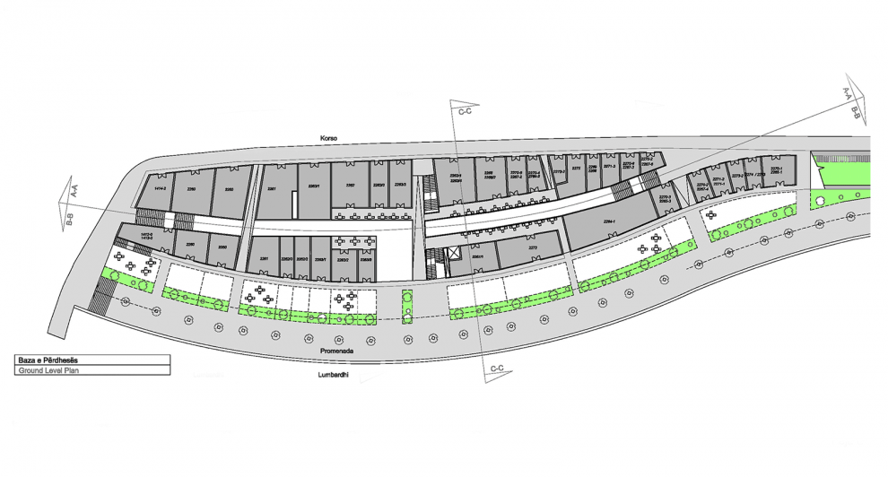 On top of the shops, the promenade level raises the