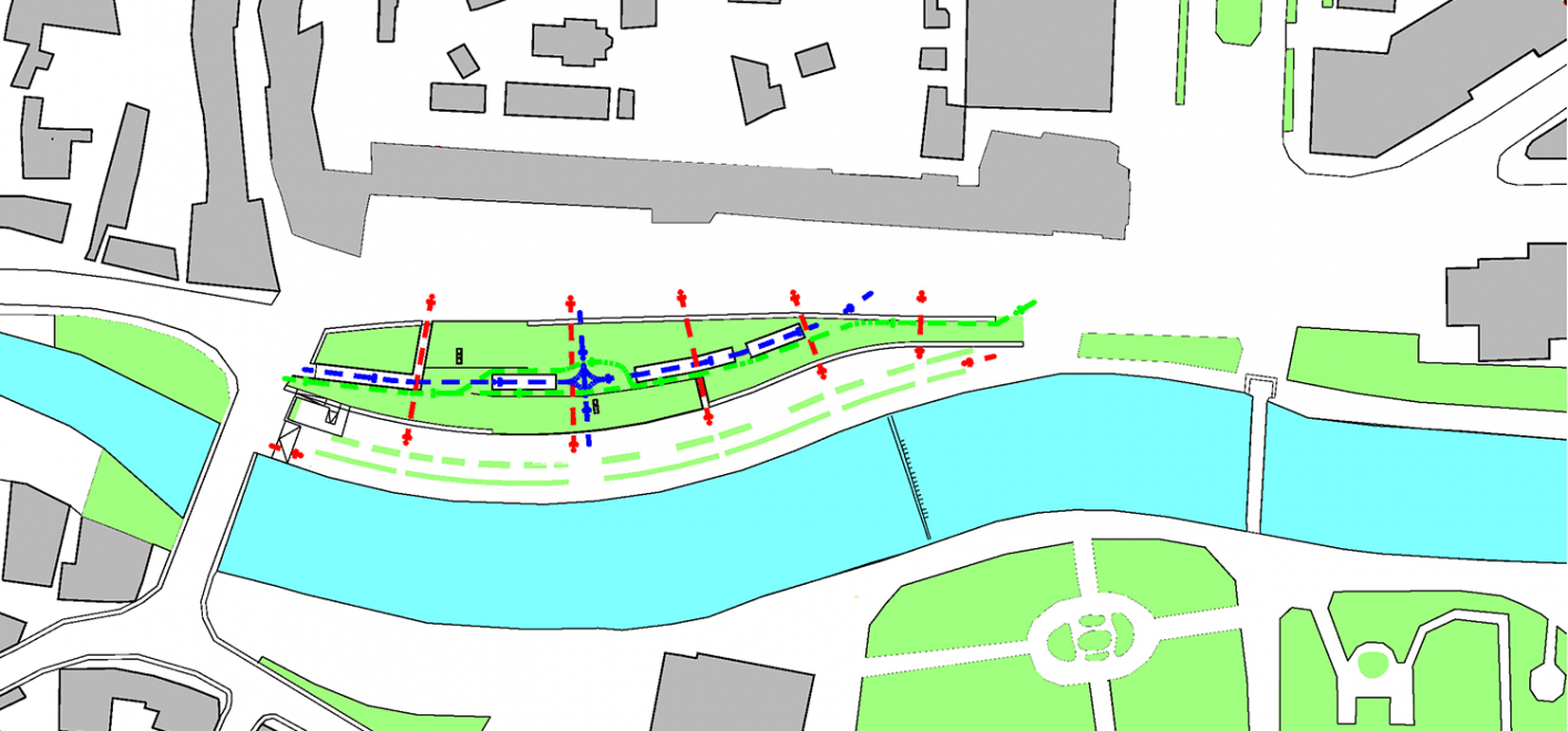 the town centre, by intertwining the visual link of