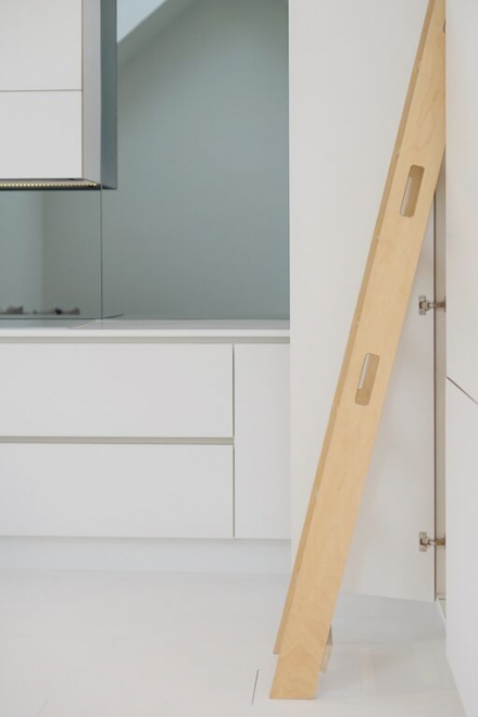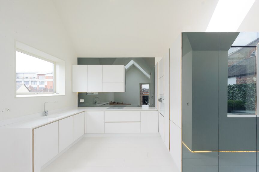 sleek white cupboards, provides an uncluttered and relaxed
