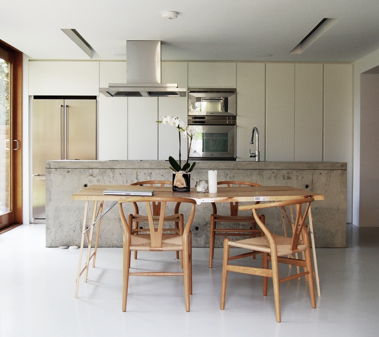 Within the newly built extension held the kitchen, at the heart of which - with its casual unfinished guise and rustic infusion, proudly stands the kitchen island that also served as bench top oven– an example of the maximisation of potential for each individual element.