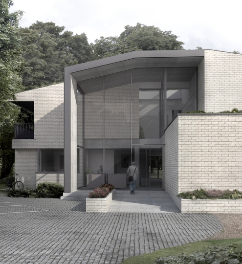 Using materials such as brick, lead, and glass - and composing them into a number of congruent arrangements - the building forms a benign backdrop to its surroundings.